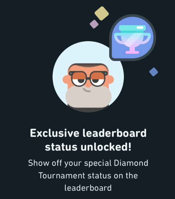 Второе, что нужно сказать. Попасть в diamond league очень просто, достаточно не пропускать уроки. Действует то же правило, что в образовательных сервисах: только 4% (где-то вычитал) пользователей завершают курс.