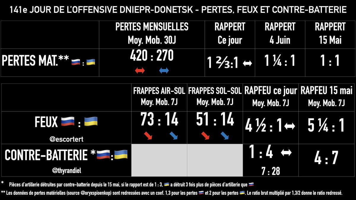 •RAPFEU est intéressant : le ratio baisse vers 4 : 1 en faveur des🇷🇺dont l'artillerie classique vacille