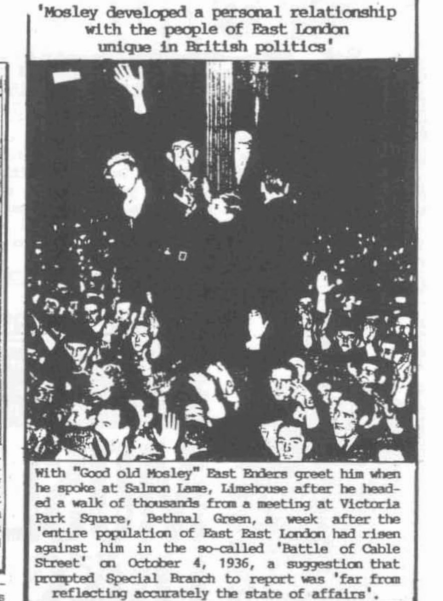 “The general cry is that the entire population of East London had risen against Mosley...This statement is, however, far from reflecting accurately the state of affairs.”