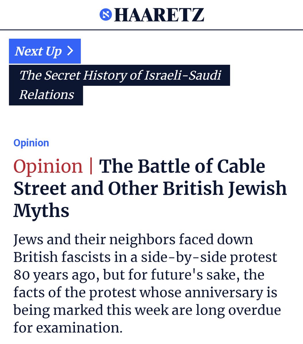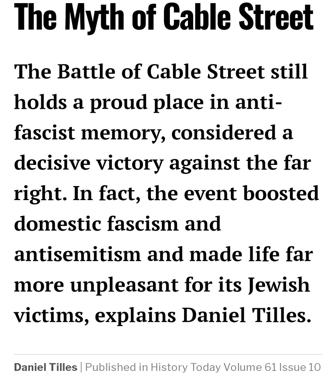 revisionism around Cable Street is not new, in fact it has been widely acknowledged by the Jewish community for inflaming tensions and creating a backlash magnitudes higher than would have otherwise occurred