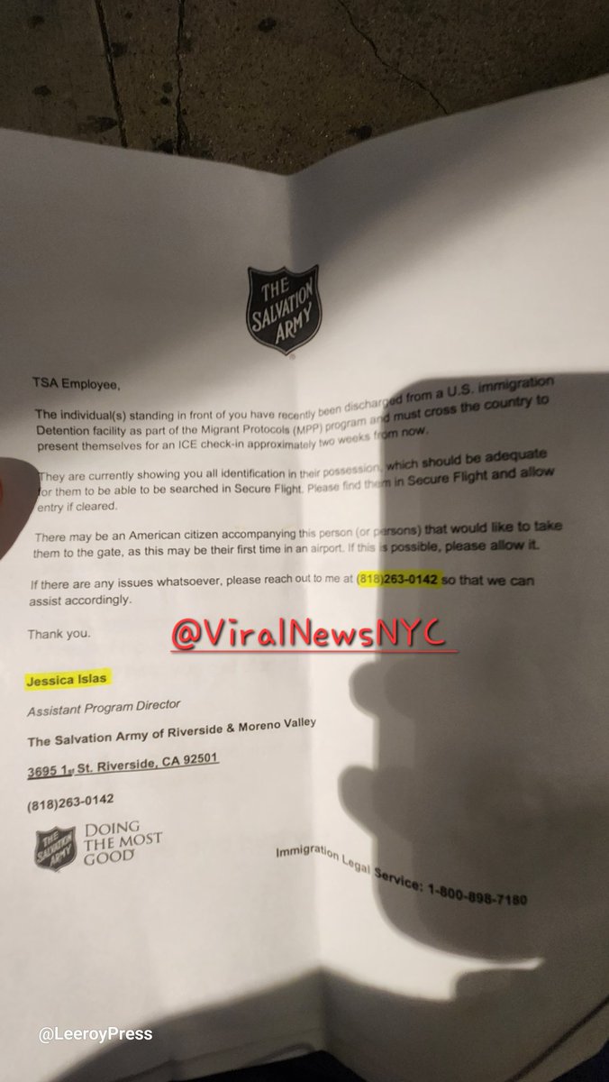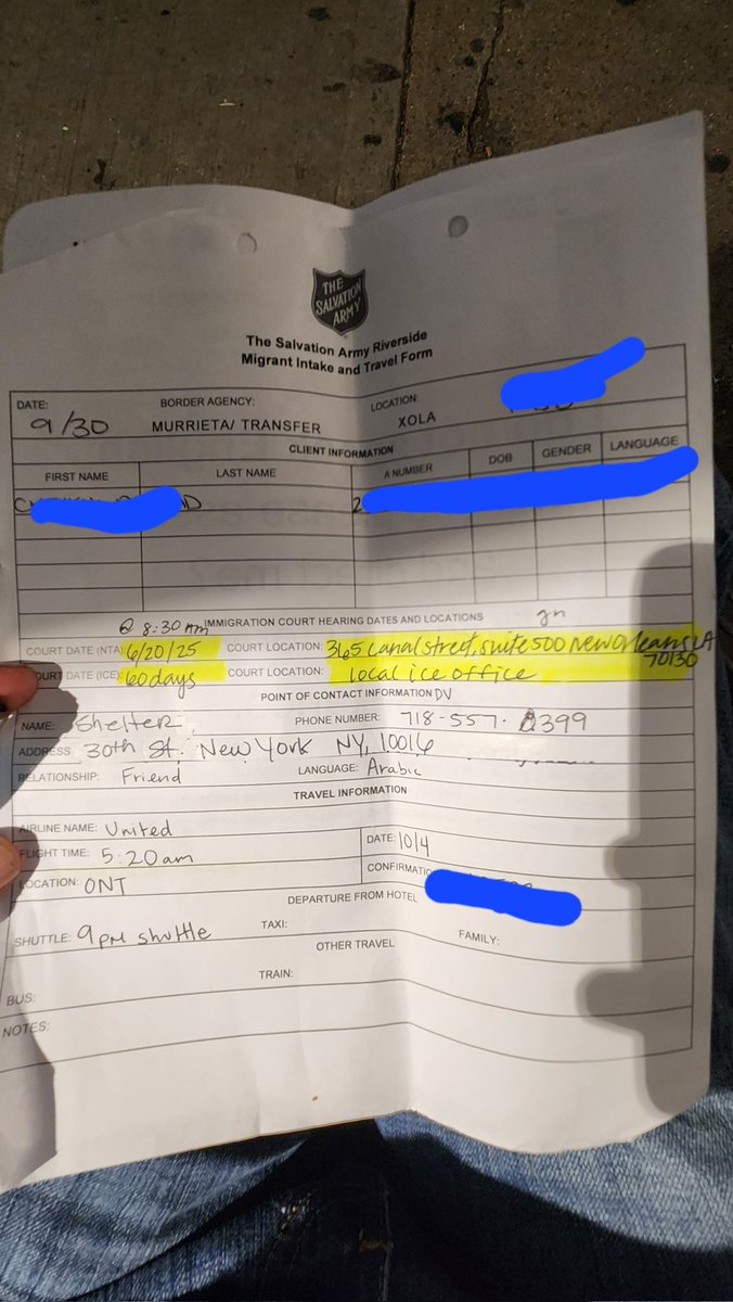 Here's more paperwork the migrant received from the Salvation Army. Looks like they played a part in finding him shelter and courts