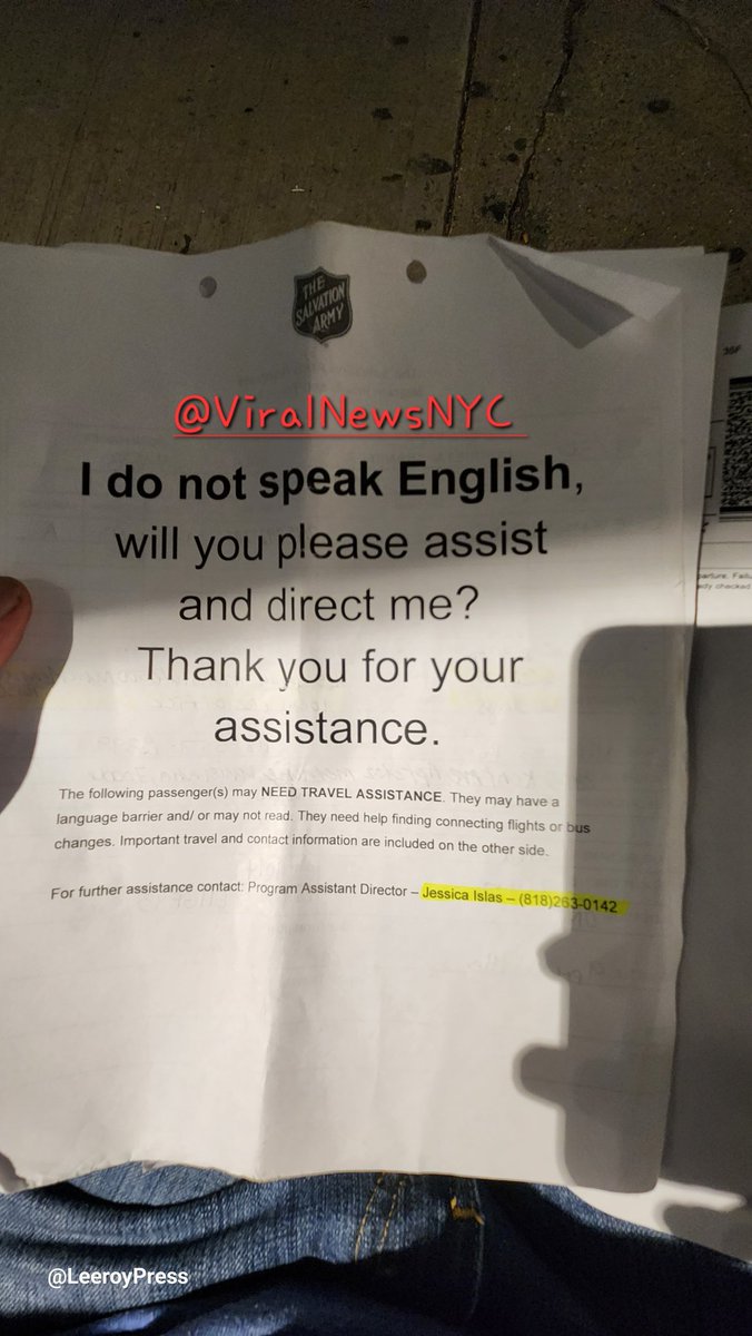 Here's one more piece of paper proved by the Salvation Army to the migrants.