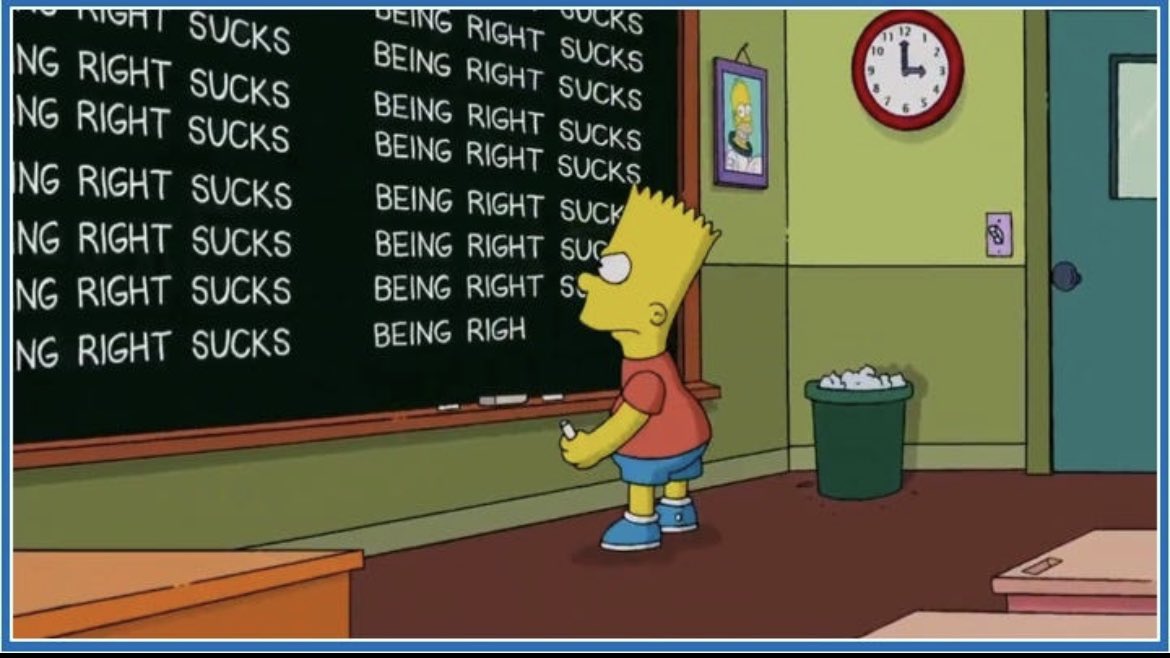 None of the writers were happy about their clairvoyance. So much so that in the opening credits of the first episode that aired following the 2016 election—on 11/14, just 4 days after Trump’s ‘victory’—Bart can be seen writing on the chalkboard “BEING RIGHT SUCKS” over and over.