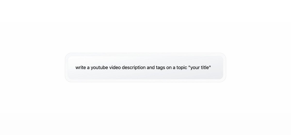 This is a simple yet very helpful prompt. Just provide the title of your YouTube video and it will automatically generate a video description along with related tags.
