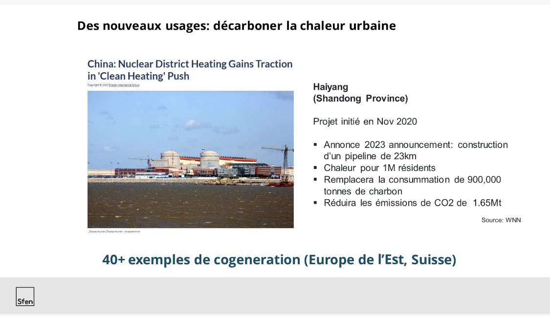 16/n Dernier point: développer des solutions pour aller au delà de la chaleur. En Chine, la ville de Haiyang va bientôt chauffer 1M d’habitants avec une boucle alimentée (via un échangeur) par de la cogénération nucléaire.