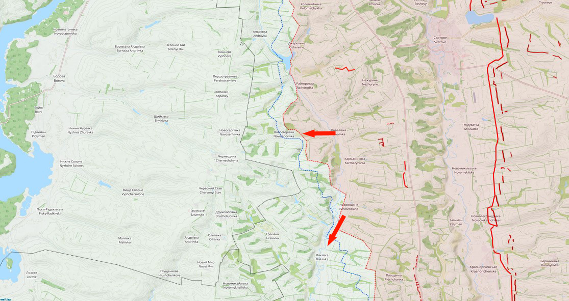 1. N-Luhansk: hier wird das Bild etwas deutlicher. Nach dem Scheitern der Angriffe auf Kupjansk liegt der Schwerpunkt der RU nun wieder SW Swatowe. Nach den hohen Verlusten beim Versuch, auf Nowojehoriwka durchzubrechen, gestern wohl ein Angriff weiter S in Ri. Makijiwka,