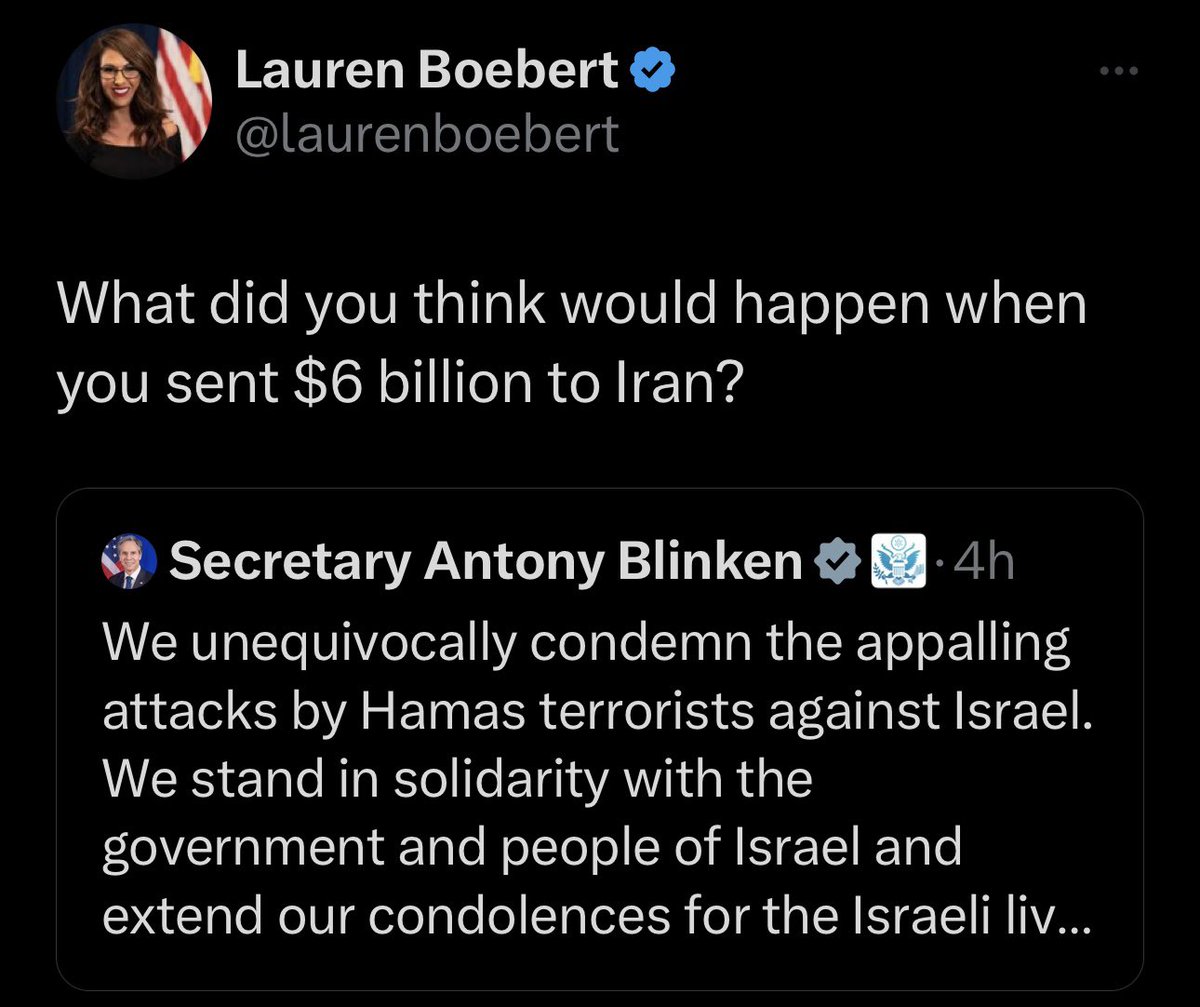 They want you to think Iran had billions in their coffers for humanitarian aid (they didn’t), which they swiftly reallocated to help Hamas attack Israel, an act of terrorism that took many months to plan and orchestrate.