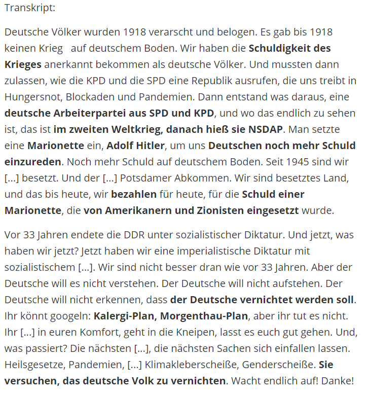 Der extrem rechte Medienaktivist Carsten Jahn ist ach vor Ort und als Redner angekündigt. Jahn lebt seit einiger Zeit in LSA und hat Verbindungen zu AfD und "Querdenkern". Zeit, den Herren im VS-Bericht aufzuführen.