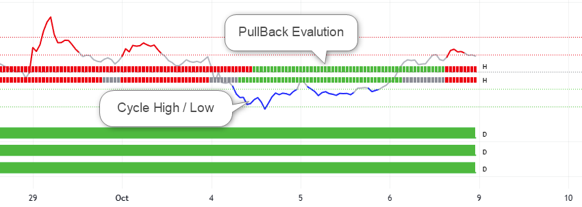 Evaluating the retracement from the trend move is super hard. We have added multi-dimensional (MTF) analysis to measure the retracement and help us know its reaching the optimum level for us to enter.