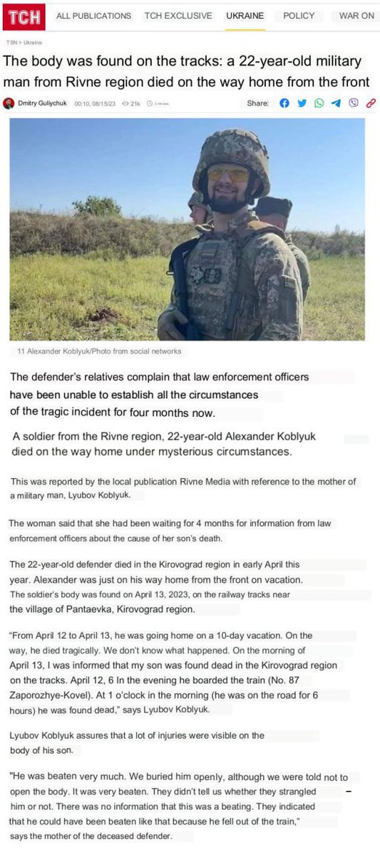 “The 22-year-old defender died in the Kirovograd region in early April this year. Alexander was just on his way home from the front on vacation. The body of the military was found on railway tracks”