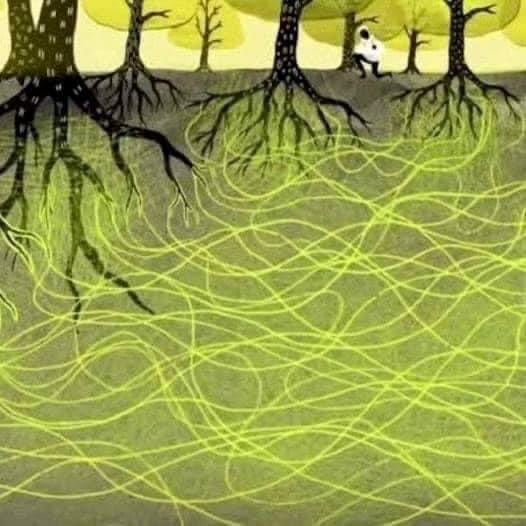 Mycelium, or mycorrysis, is a fungus that expands underground creating a network of connection between all plant species, something like the internet, that allows them not only to communicate, but