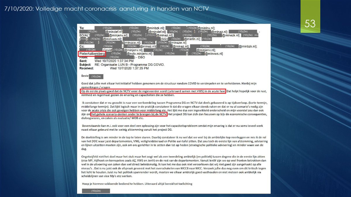 Wie had de crisisaansturing in handen in NL, en waarom zagen wij deze mensen zelden of nooit aan de praattafels en werd daar niet of nauwelijks over geschreven?