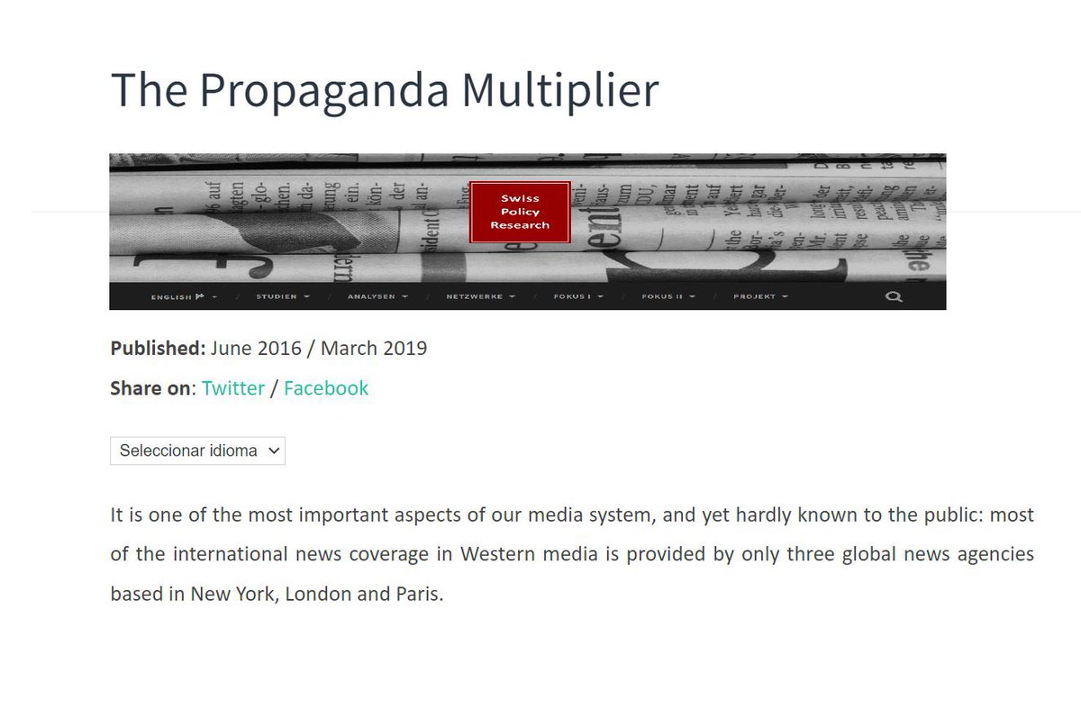 Todos estos datos tienen como fuente la investigación que hizo la Swiss Policy Research en la que se analizaron 9 medios europeos durante las primeras 2 semanas de la intervención de Rusia en el conflicto sirio, del 1 al 15 de octubre de 2015. …swprs.org/the-propaganda