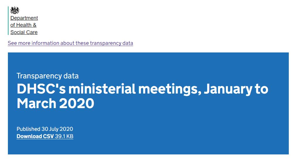 However there is no sign of this meeting in the @DHSCgovuk transparency data.