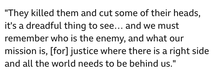 Oorsprong van het verhaal is perstripje van de IDF op dinsdag naar de door Hamas aangevallen kibbutz Kfar Aza. Hier repo’s van de BBC en de Independent: