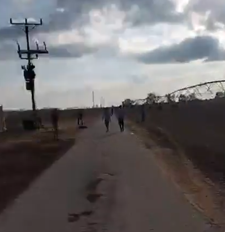 The streamer then heads east, following other civilians and Hamas militants as they head both on foot and by vehicle toward Nir Oz.
