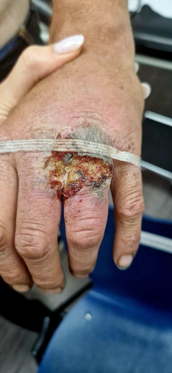 Hij had ernstige wondroos, mogelijk een (geïnfecteerde) botbreuk en geen tetanusbehandeling gehad - kortom: het was ernstig. Mijn collega stuurde hem door naar de eerste hulp.