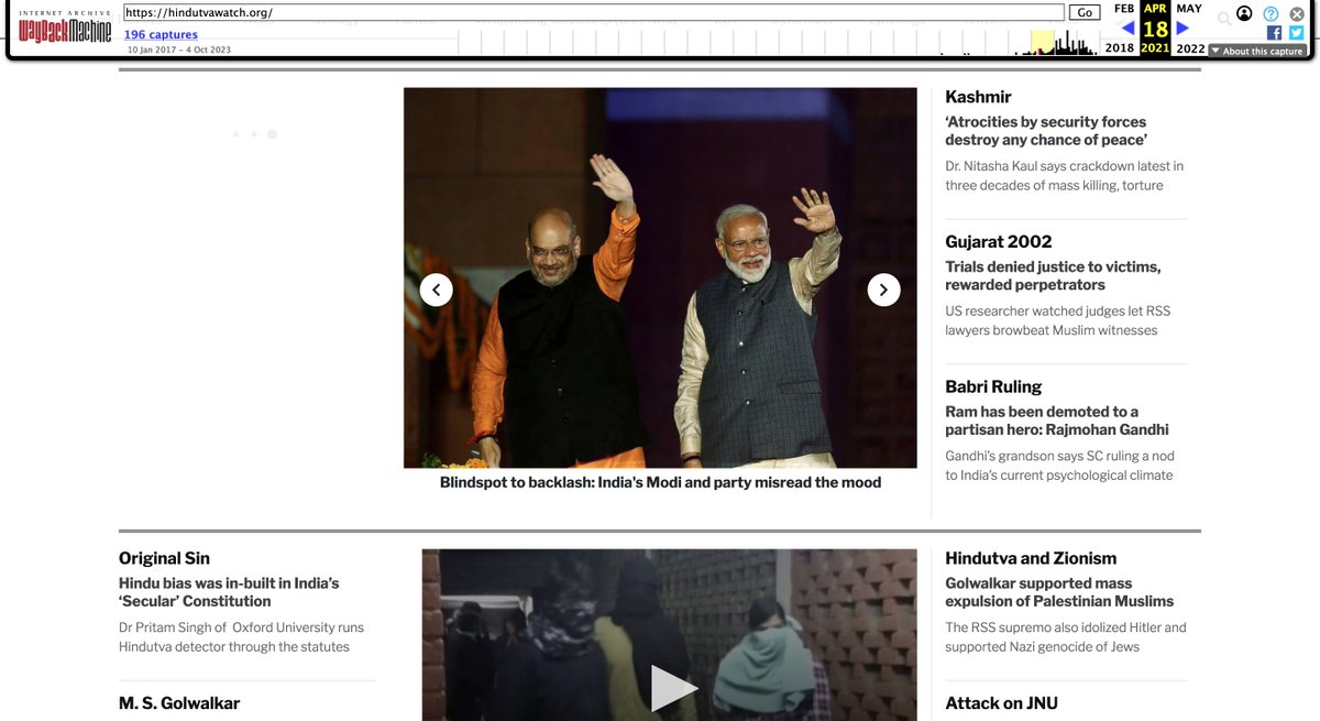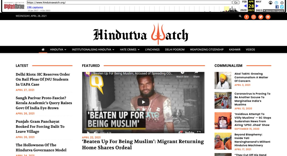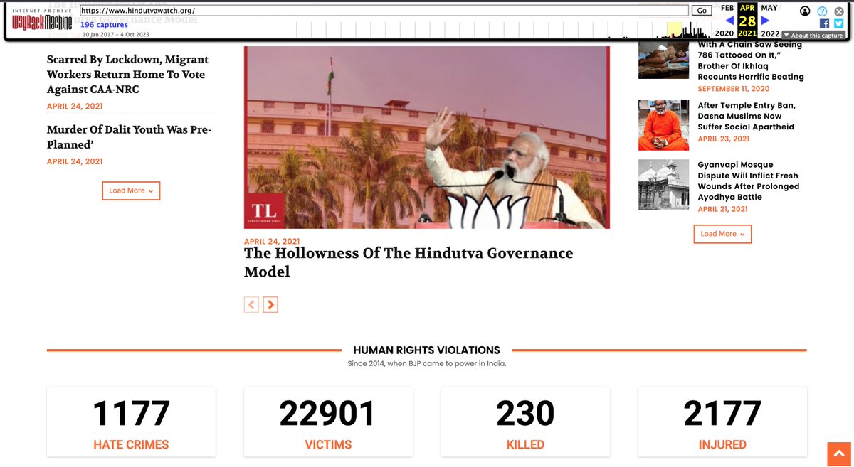 Confirming @pranshuverma_'s reporting of @HindutvaWatchIn's April 2021 actual founding date. 🧾✅ web.archive.org/web/2021042813…