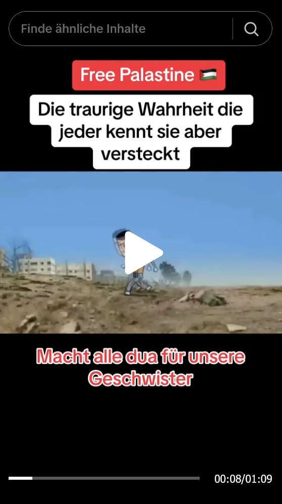 In den Kommentarspalten wird teils sehr unverhohlener Antisemitismus geäußert, der nicht gelöscht oder blockiert wird. Einige Videos unter den Palästina-Hashtags wurden jedoch bereits gelöscht & sind nicht mehr verfügbar. Bei vielen Videos sind auch Content-Warnungen zu sehen. 5/