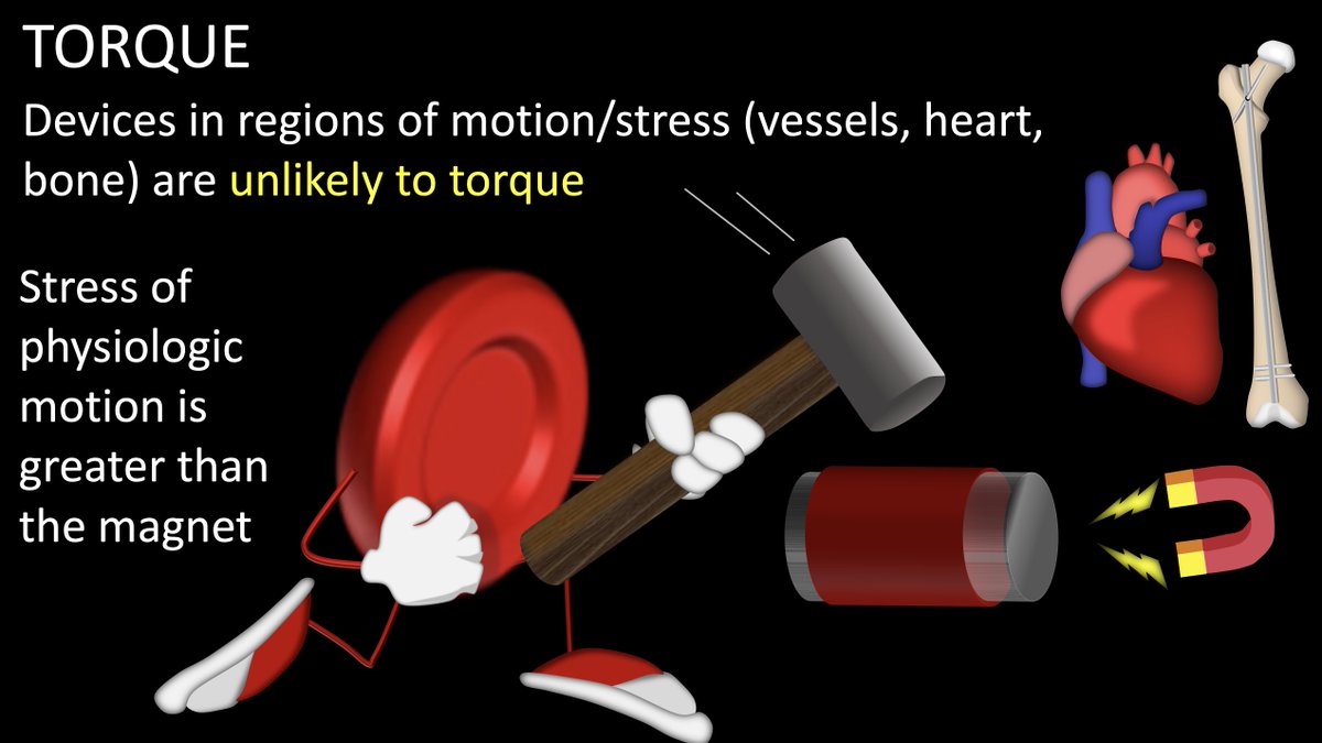 However, if the device is in anything w/motion (vessel w/flowing blood, beating heart, moving bones), torque from physiologic motion is stronger than any from the magnet.