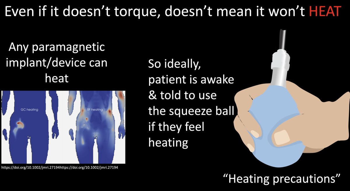 Even w/low magnetism, you get heating—& it’s hard to predict b/c the heat amount depends on the patient, scan parameters, etc