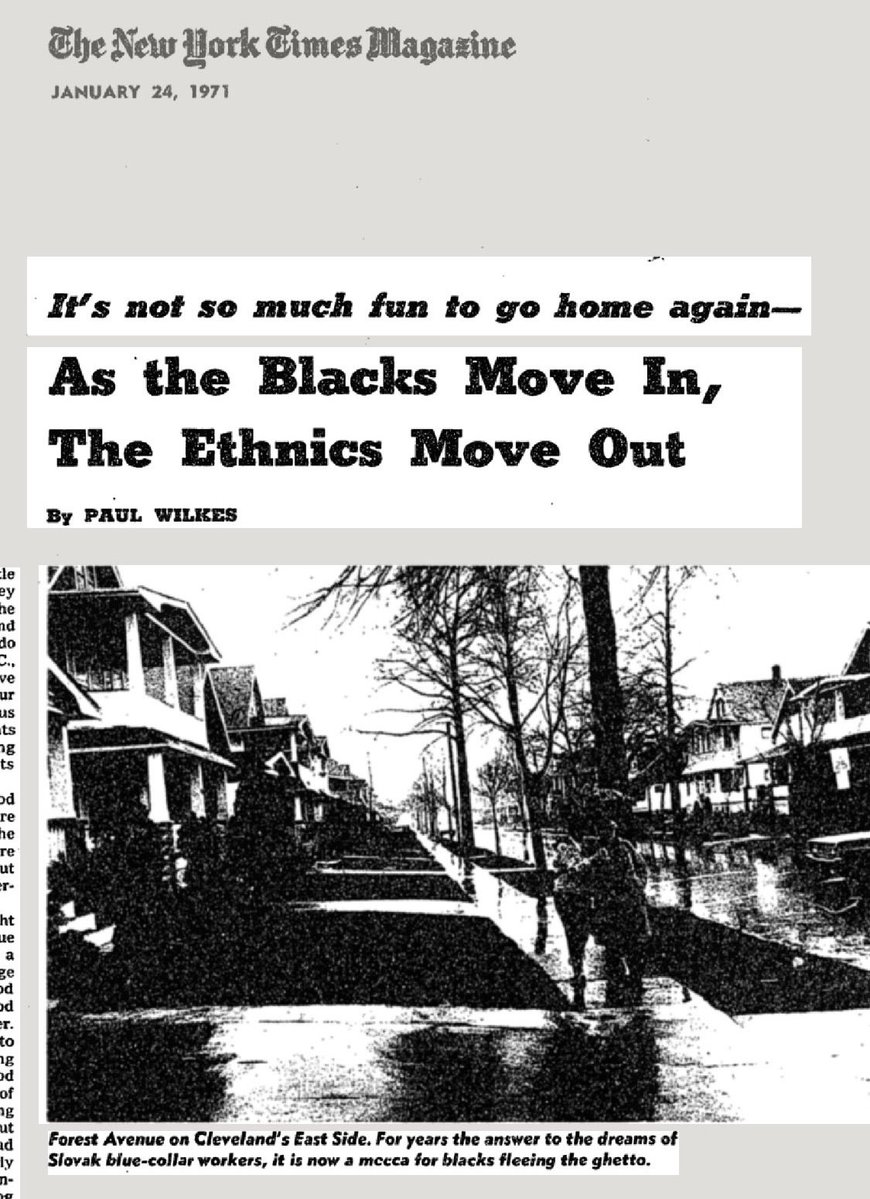 Interesting New York Times Magazine article on white flight from 1971 by a journalist who grew up in a Slovak neighborhood of Cleveland in the early 1950s and returned after Carl Stokes was elected the city’s first black mayor in 1967. nytimes.com/1971/01/24/arc…