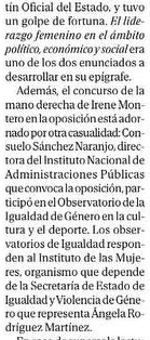 A partir de ahí, la "noticia" lanza dos datos que hacen pensar al lector que la secretaria de Estado cuenta con ventajas en esta oposición: el tema que cayó en el examen y que la directora del organismo convocante tuvo relación laboral con el Observatorio de la Igualdad de Género