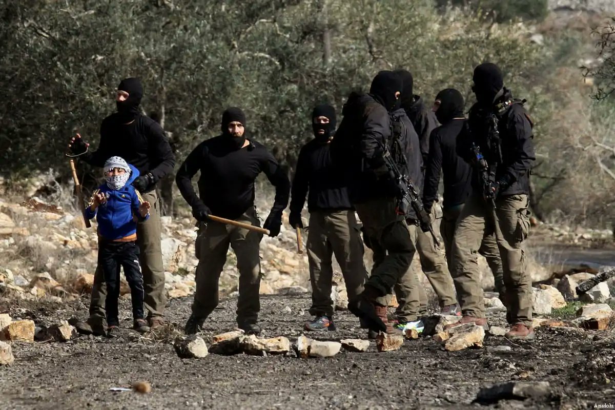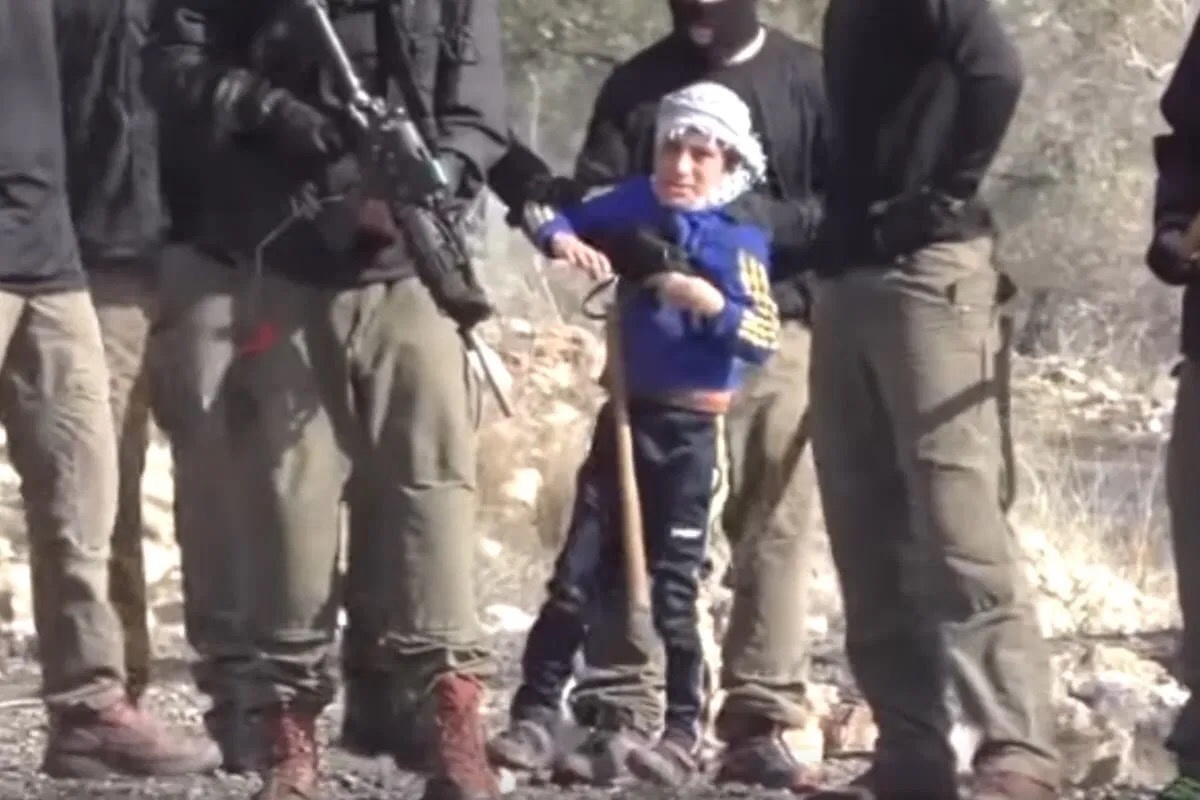 Las fuerzas de ocupación sionistas encapuchadas capturan a un niño de 7 años y lo usan como escudo humano durante una protesta en Kafr Qaddoum, en diciembre de 2016.