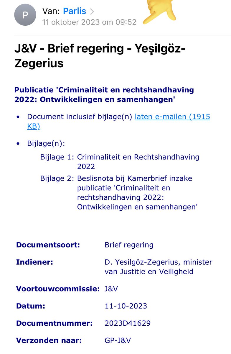 Als @DilanYesilgoz pas 8 minuten vóór een debat over criminaliteitsbestrijding een rapport met veiligheidscijfers over haar jaar als minister naar de Kamer stuurt, dan moet je even goed opletten. Zeker als de beslisnota al ruim een week oud is. (1/6)