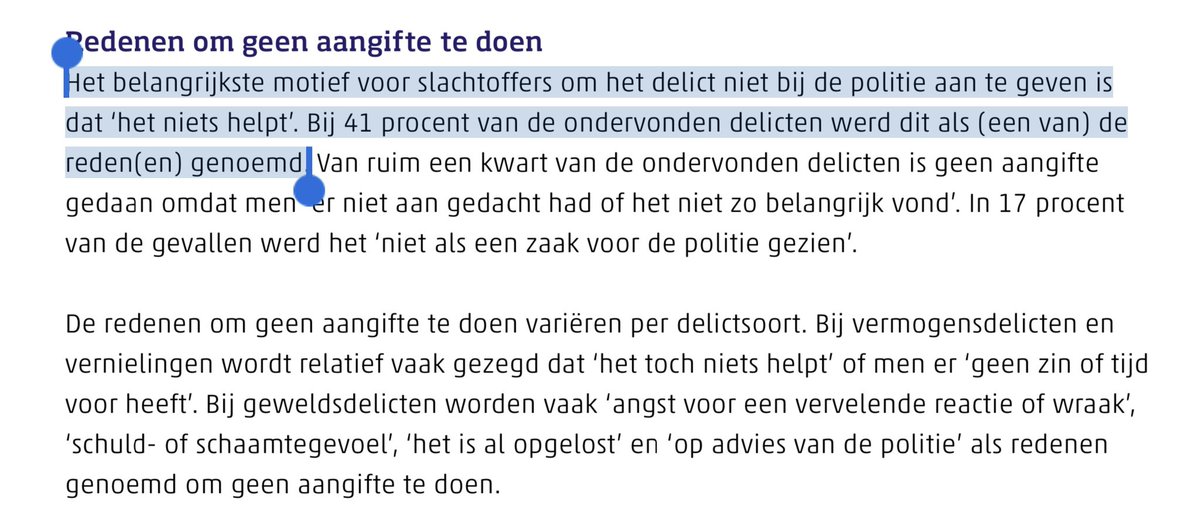 Dit is extra zorgelijk, omdat we weten dat de bereidheid om aangifte te doen bij de politie laag is. Zie bijvoorbeeld de laatste Veiligheidsmonitor of dit onderzoek: