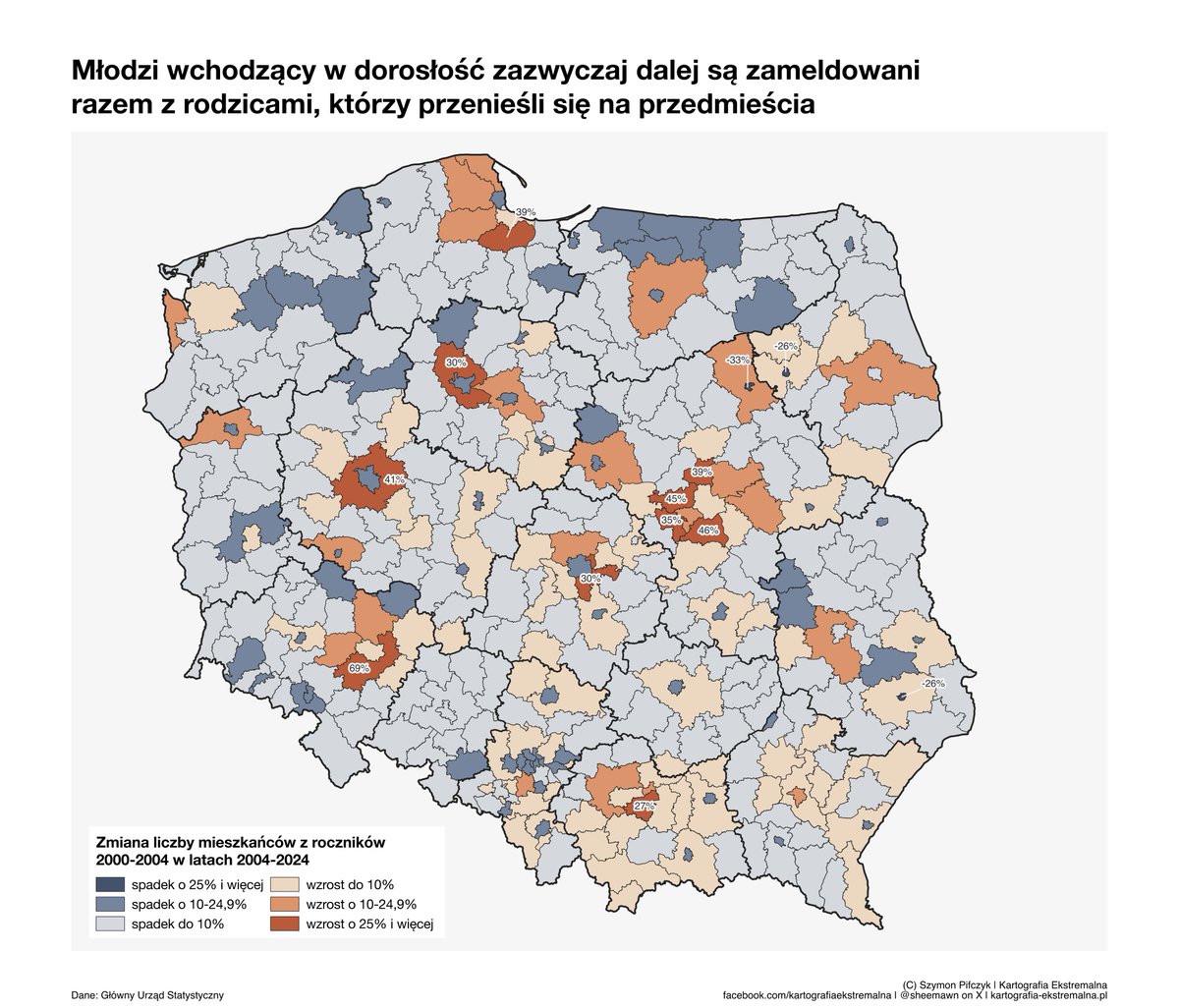 Wpis jest zainspirowany niedawnym artykułem prof. Piotra Szukalskiego z Uniwersytetu Łódzkiego, który porównał liczbę osób z roczników 1990-1994 w danym powiecie w 2004 roku z liczbą osób z tych samych roczników w powiecie dwadzieścia lat później. 1/