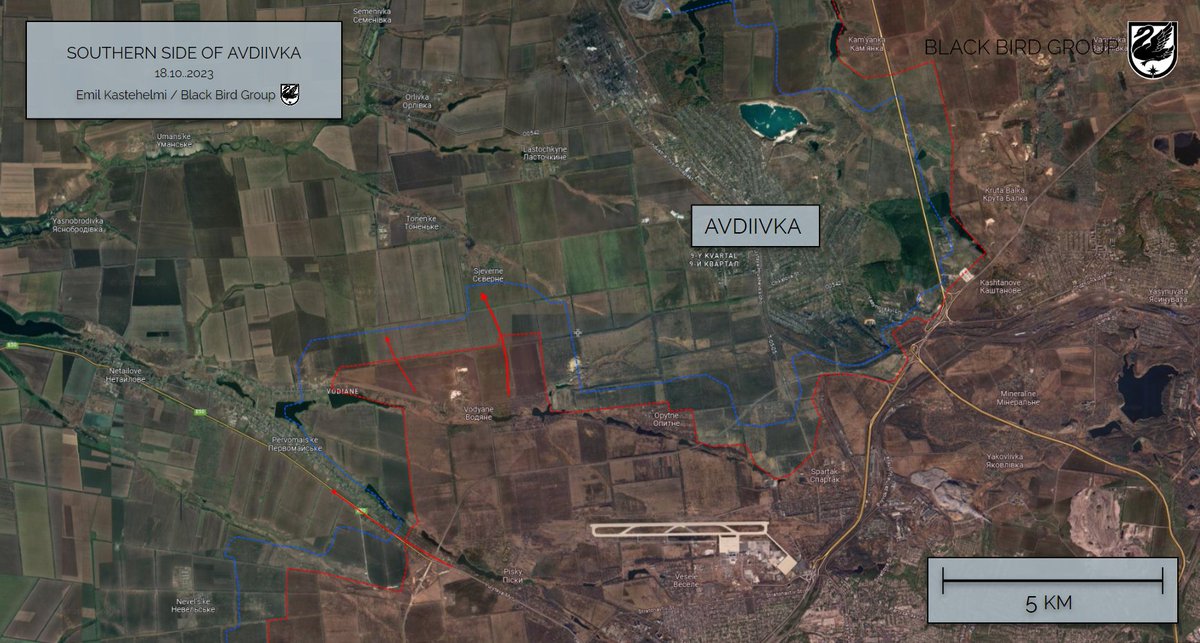 Even though the first attacks were repelled, Russia will likely attack in this direction again in the future. There aren't many similar targets elsewhere. Progress will probably be slow, naturally depending on how much resources Russia will direct into capturing Avdiivka. 9/