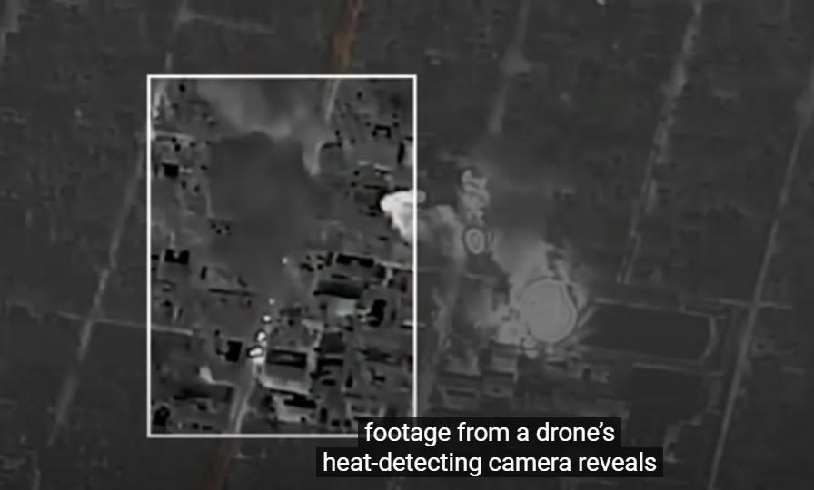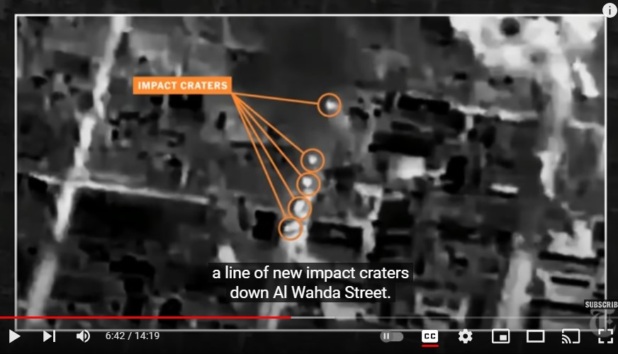 This is another drone thermal camera view that was mislabeled by the NY TIMES as six impact craters on Al Wada Street.