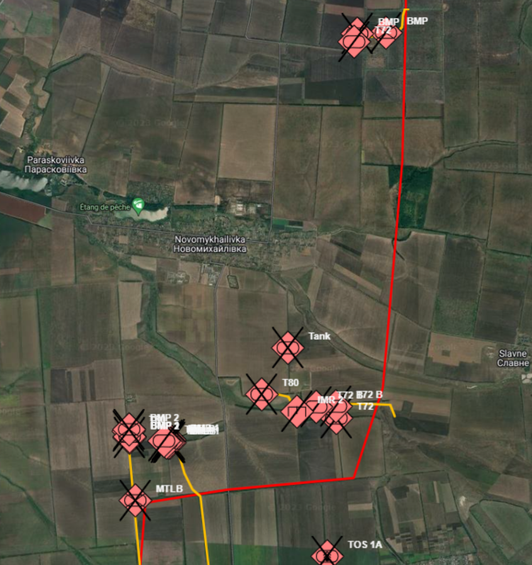 Le massacre a commencé début Octobre par un autre village bien plus au sud: 21 pièces d'équipements ont été perdues dans l'attaque de Novomykhalivka.