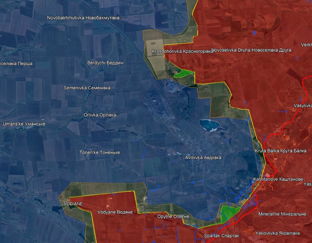 Pour le moment, l'assaut Russe a Avdiivka est un terrible échec, on remarque 2 progressions qui ne se situent pas encore dans des zones réellement stratégiques.
