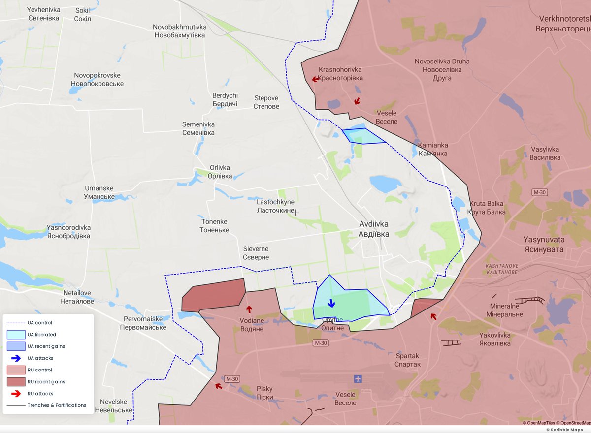 ➡️North of Avdiivka, heavy fighting resumes to gain control over Terrykon. Currently the AFU still maintains control but Russia throws all it has..