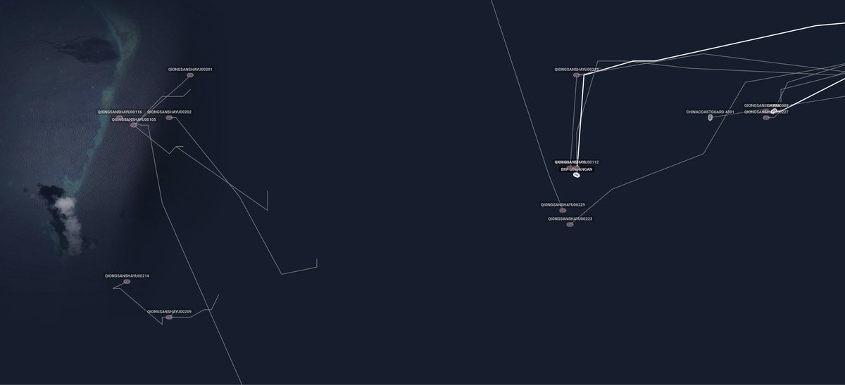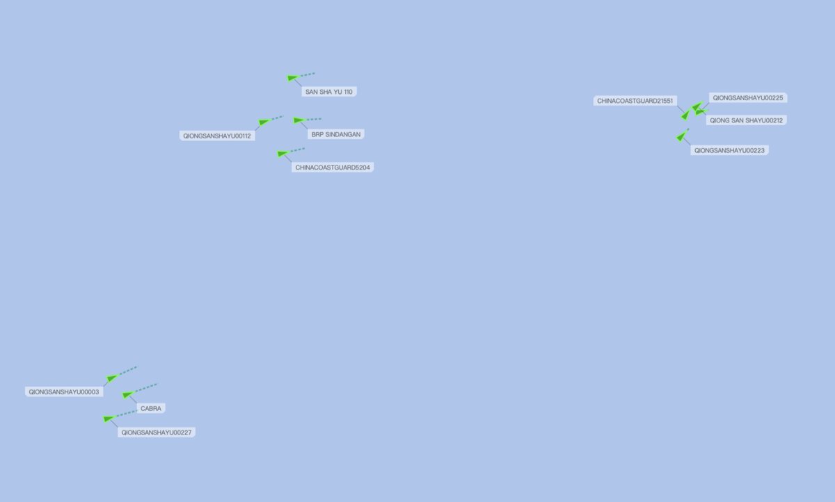 7/0759 local time - now both 🇵🇭BRP Sindangan & Cabra are so closely engaged with 🇨🇳militia ships that their tracks are superimposed with Qiong Sansha Yu 00110 and 00227, respectively. [🧵7/x]