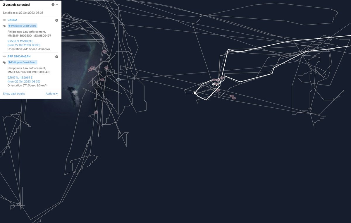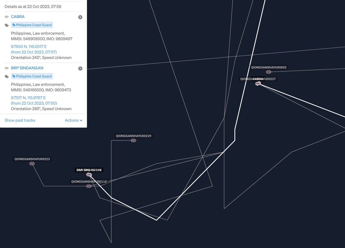 👀4/🇨🇳Militia ship Qiong Sansha Yu 00227's AIS track is literally superimposed over 🇵🇭BRP Cabra's as of 0643L. AIS tracking is often inexact, but the two ships appear to be very closely engaged. [🧵4/x]