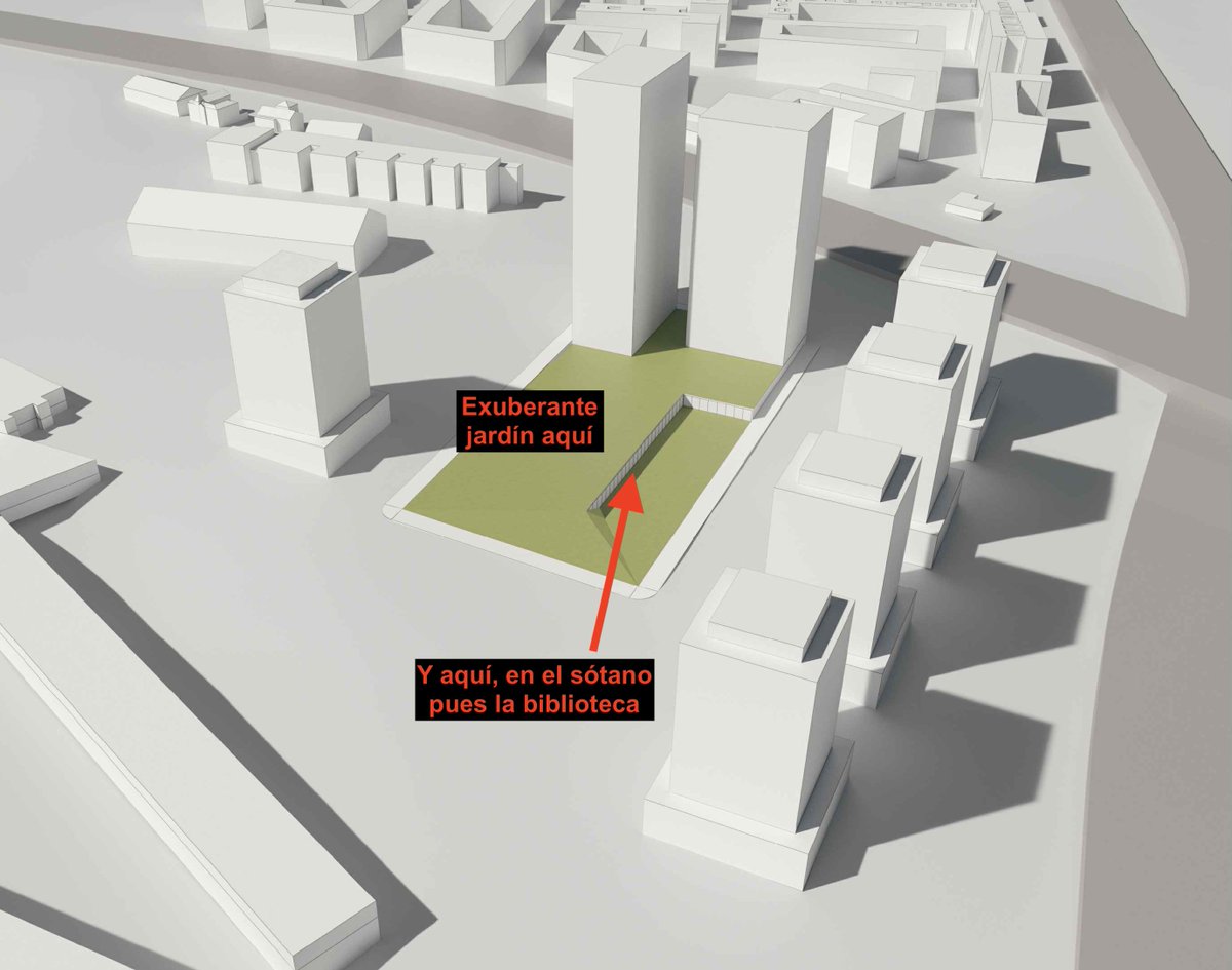 Lo de exuberante jardín es "ironía on", por supuesto. ¿Desde cuando se puede dar una cesión de zona verde sobre una losa? Los ciudadanos apáñense con los arbustos (y los 4 sótanos), y la empresa (condenada a demoler) prémiese con más metros para hacer negocio.