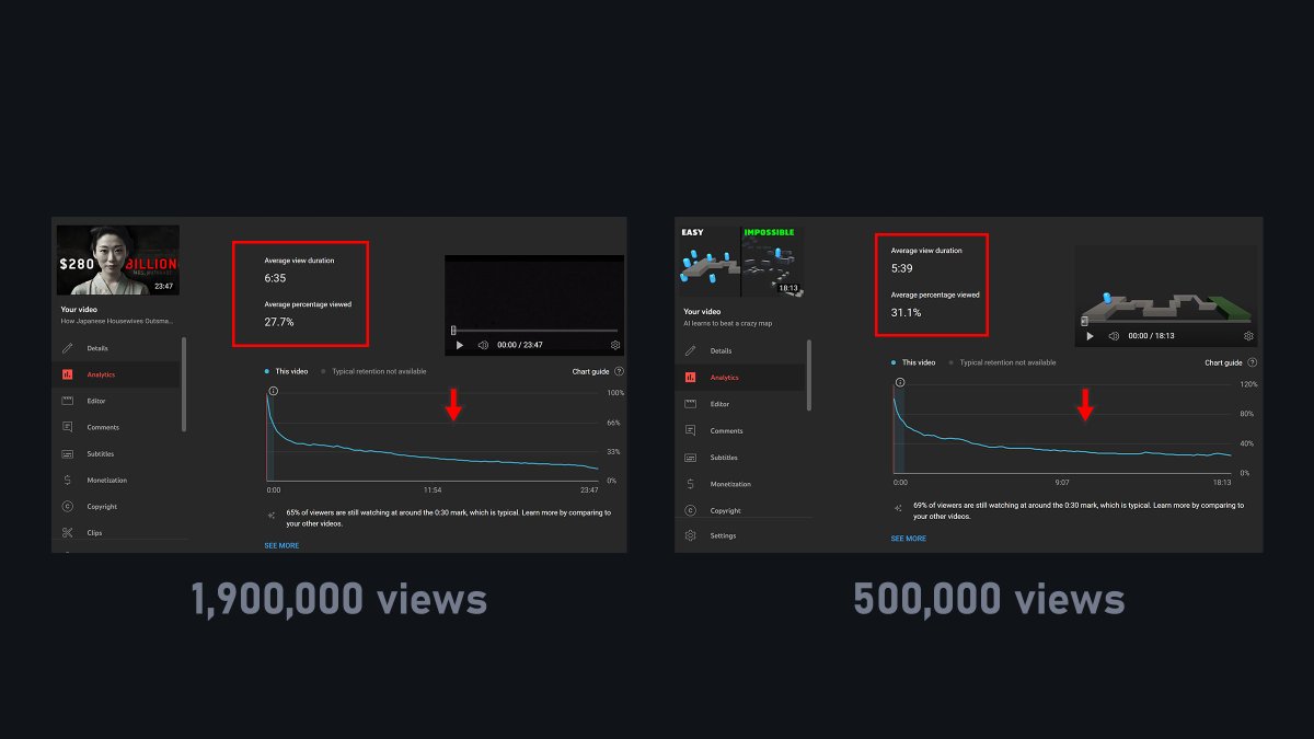 And from day 1, as you can see, the CTR on both videos has never been "good".