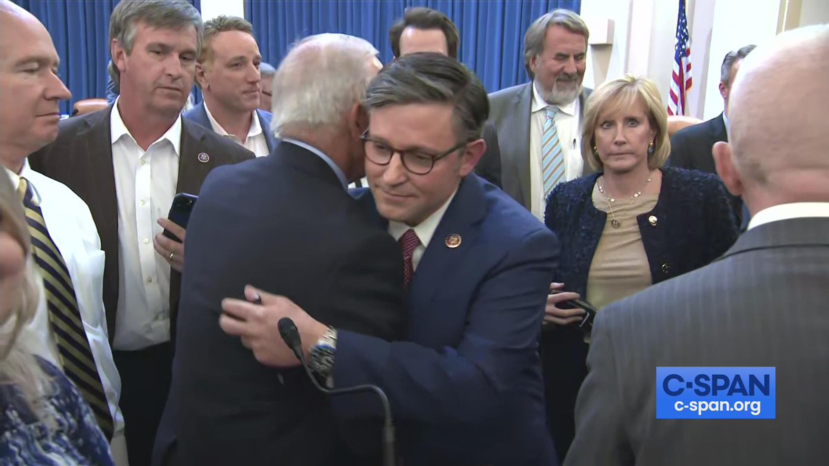 Gimenez, who had been supporting McCarthy to return as Speaker, congratulates Speaker designee Johnson.