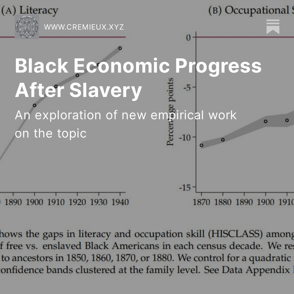 My first post was an overview of Black economic progress in America after the demise of slavery.