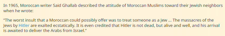 Similarly, Morocco barely punished riots against its Jews, and in 1963, it expelled them.