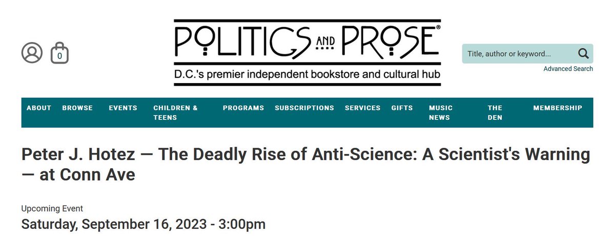 1/n Excited about having @MedSocDC and all are welcome to join me @PoliticsProse in Wash DC in about 3 weeks Saturday PM Sept 16 to discuss my newest book with @JHUPress @JohnsHopkins: The Deadly Rise of Anti-science: A Scientist’s Warning