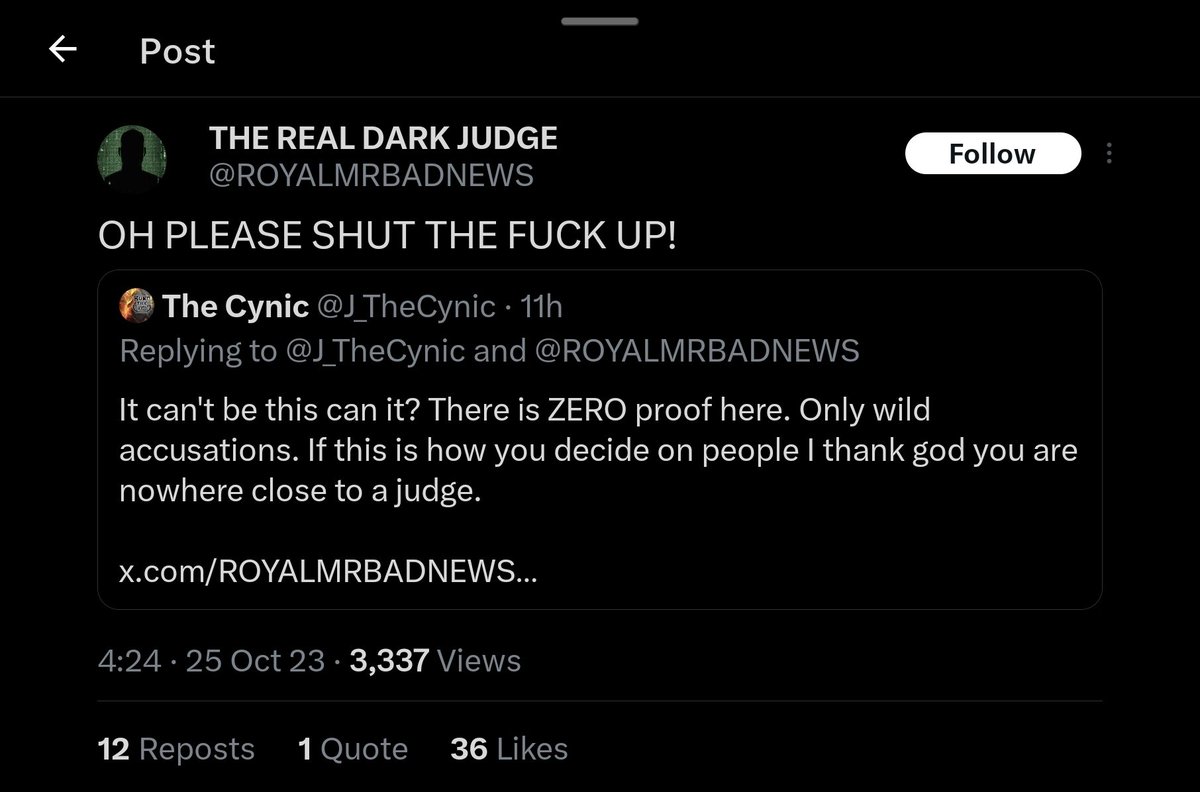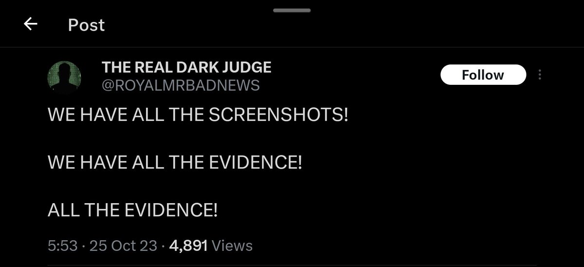 The ongoing controversy surrounds the true identity of @Royalmrbadnews (THE REAL DARK JUDGE).