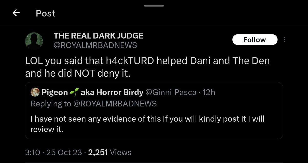 I gave them information on a certain Fake TRDJ because he started trying to doxx them...lmao
