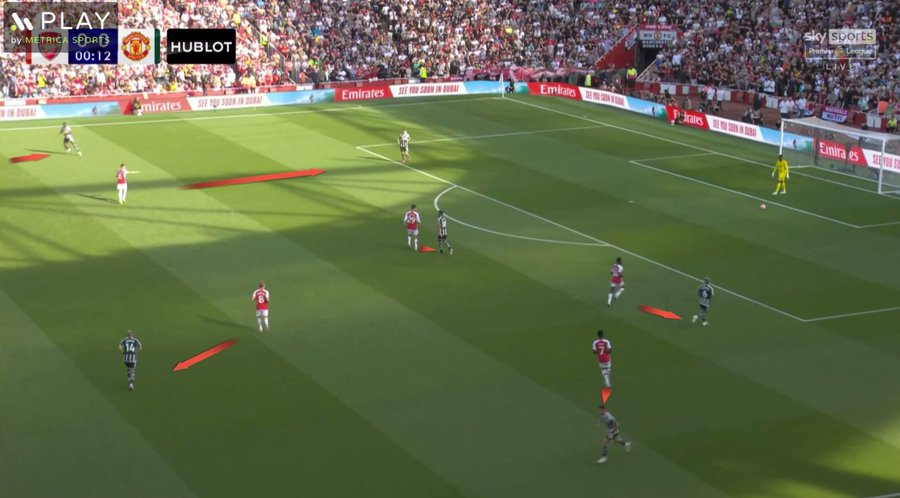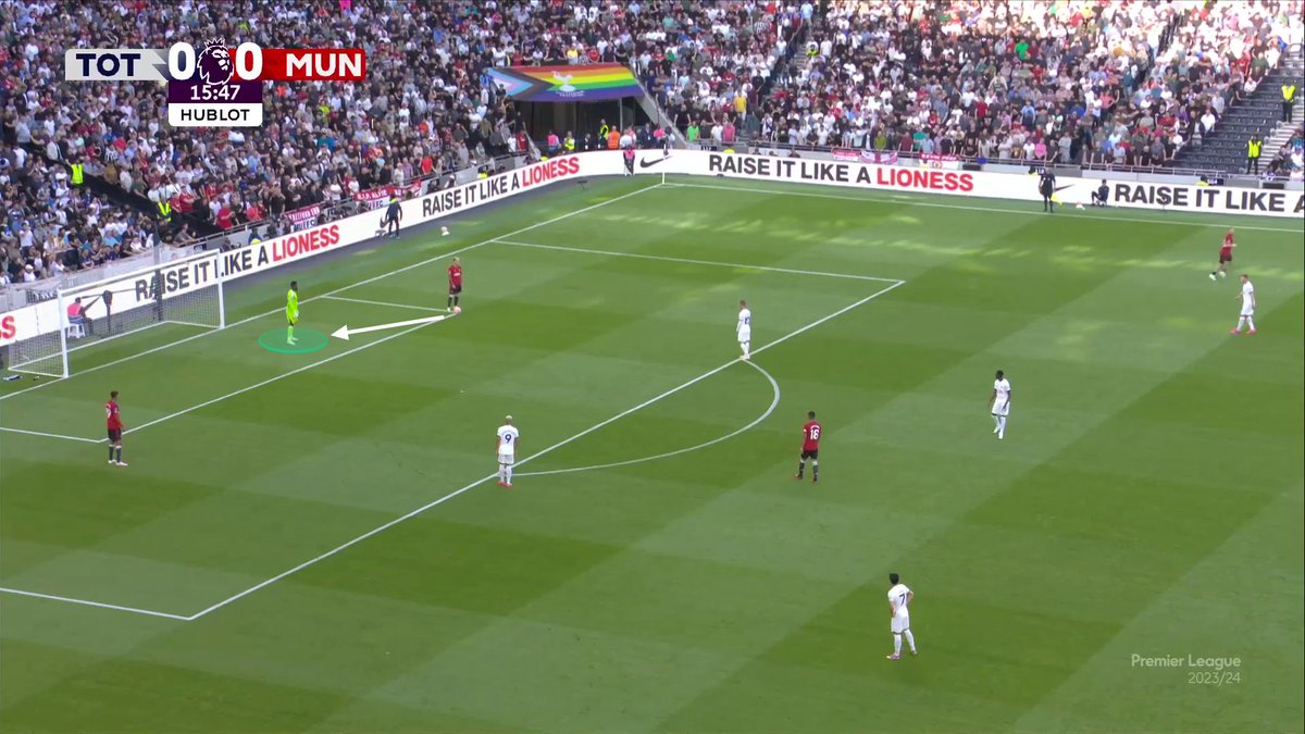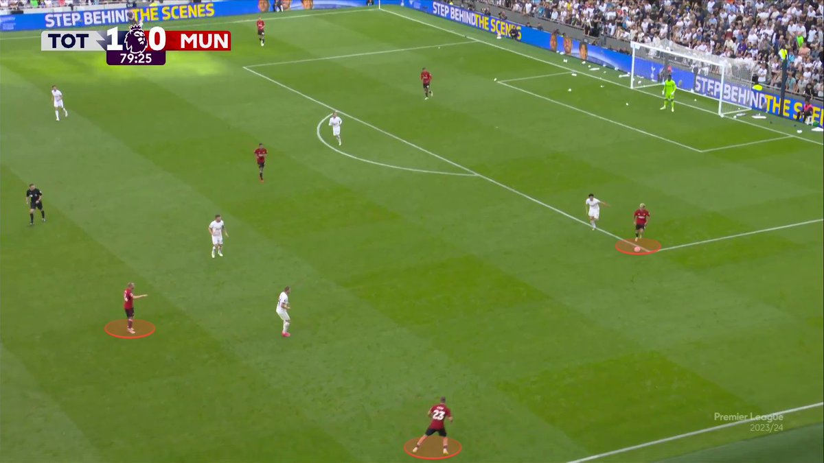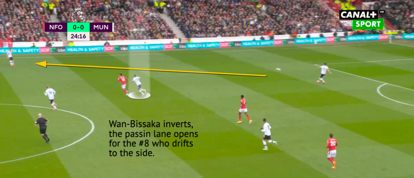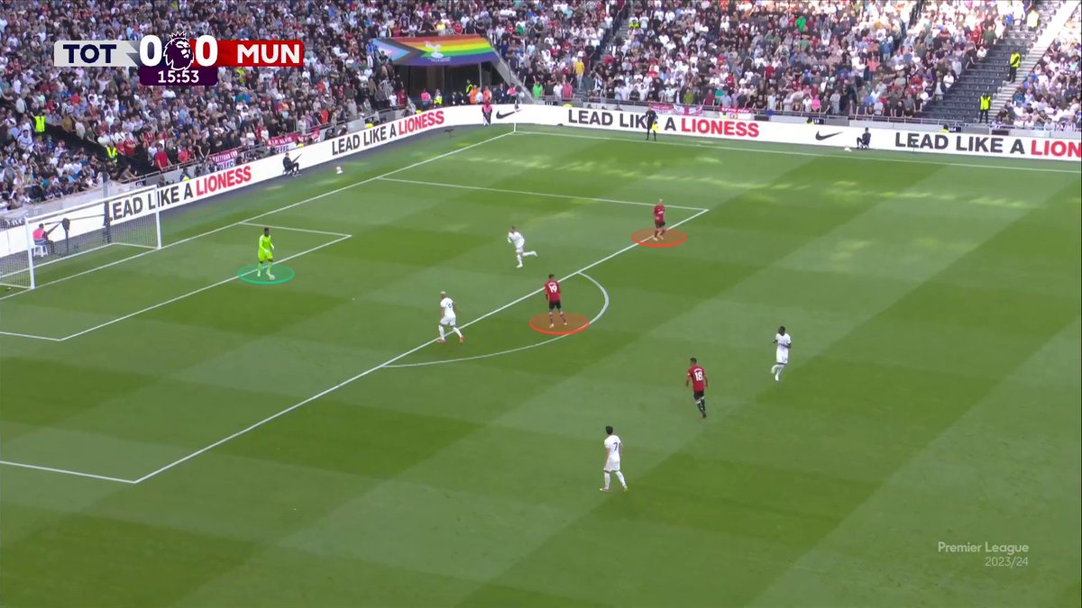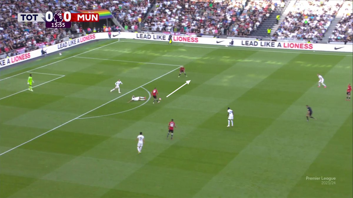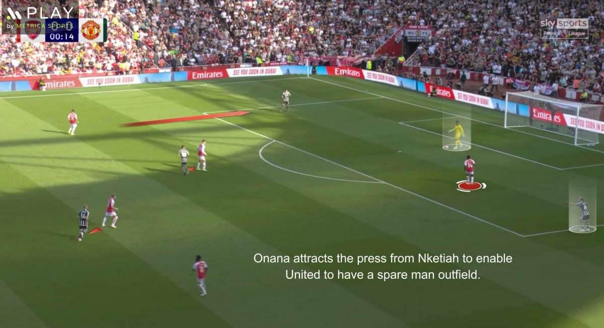 However,, against Arsenal, United had a particularly successful day at building out from the back as Onana consistently attracted pressure against Arsenal's man-to-man block.