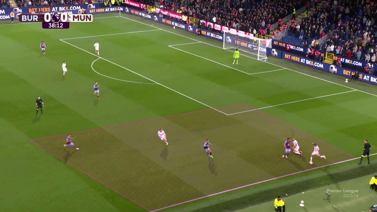 Here we see McTominay drop into that position but Burnley easily match up on the flank.