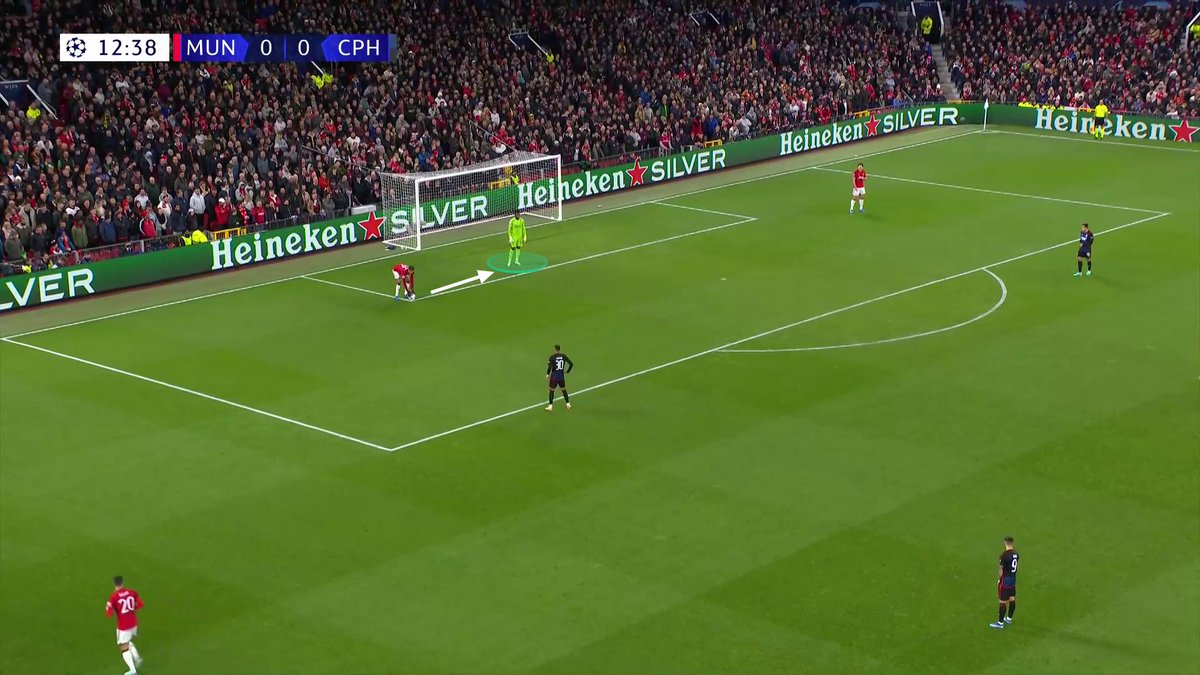 The exact same thing happened against Copenhagen as Varane played it short, inverted, & Onana went long.