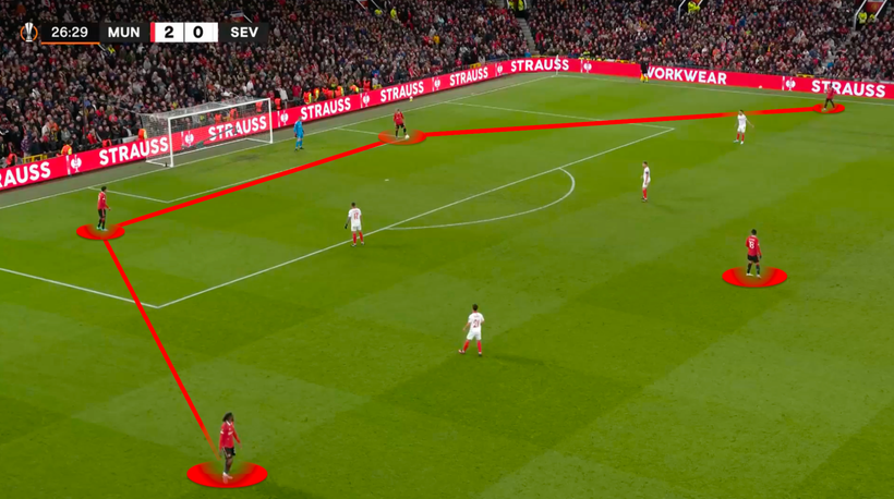 United then effectively used third man combinations to find the spare man or Onana found him himself.